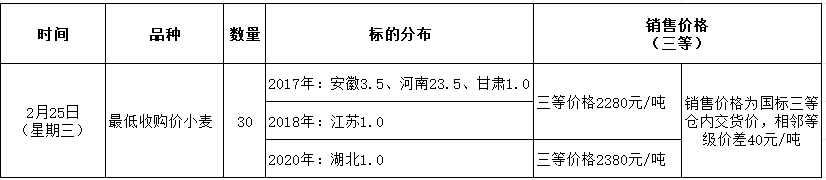 注:銷售價格等級差40元/噸;本交易安排為預(yù)公告,交易日的實際銷售數(shù)量以國家糧食交易中心官網(wǎng)發(fā)布的交易清單為準(zhǔn)。