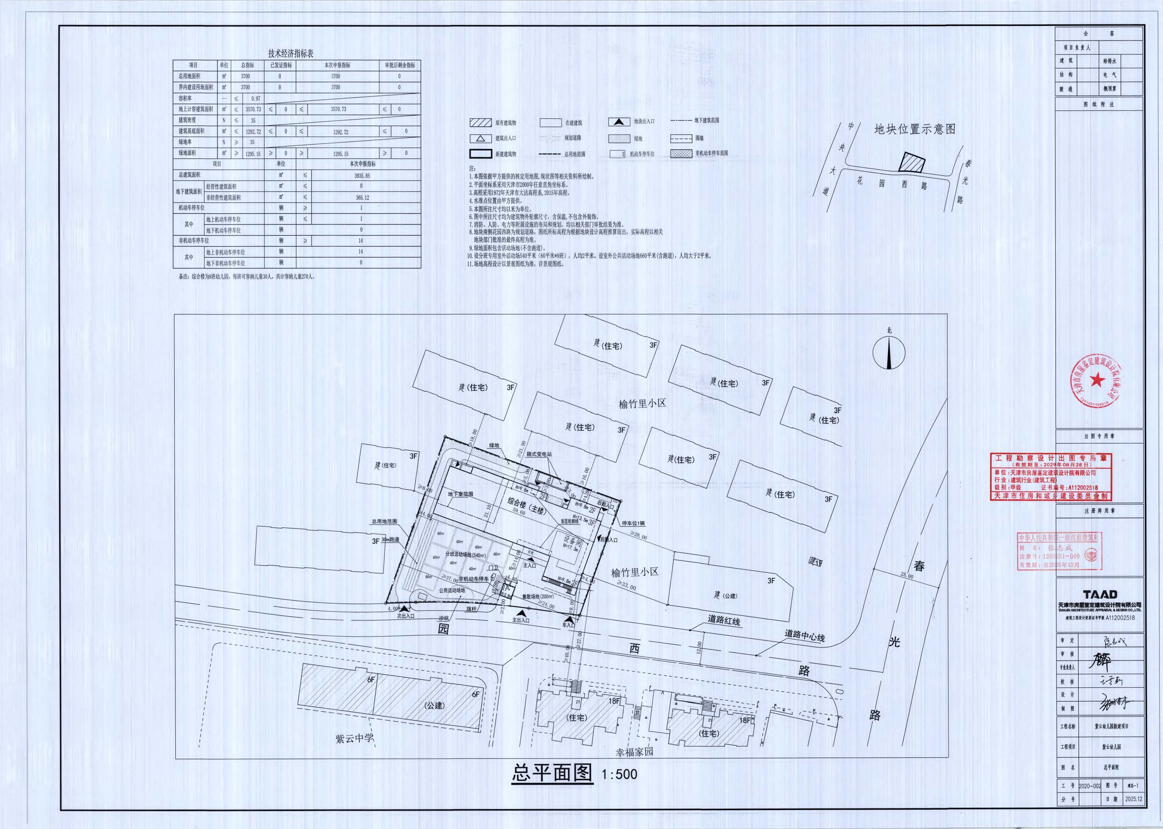 ******人民政府關(guān)于印發(fā)濱海新區(qū)2020年政府投資計(jì)劃和2020-2022年政府投資三年滾動(dòng)計(jì)劃的通知》(津?yàn)I政發(fā)[2020]27******幼兒園綜合樓和門衛(wèi)用房,總建筑面積3935.85平方米。由于設(shè)計(jì)圖紙工規(guī)總平面圖與圍墻總平面圖關(guān)于綜合樓(主樓)單體表達(dá)方式不一致的原因,申請(qǐng)對(duì)原批復(fù)總平圖進(jìn)行如下調(diào)整: