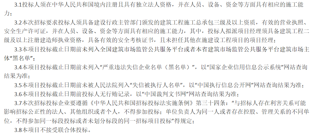 3、投標人資格要求