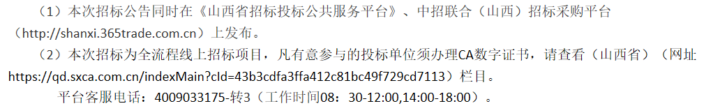 提出異議的渠道:通過中招聯(lián)合(山西)招標采購網(wǎng)(******)在線提出。